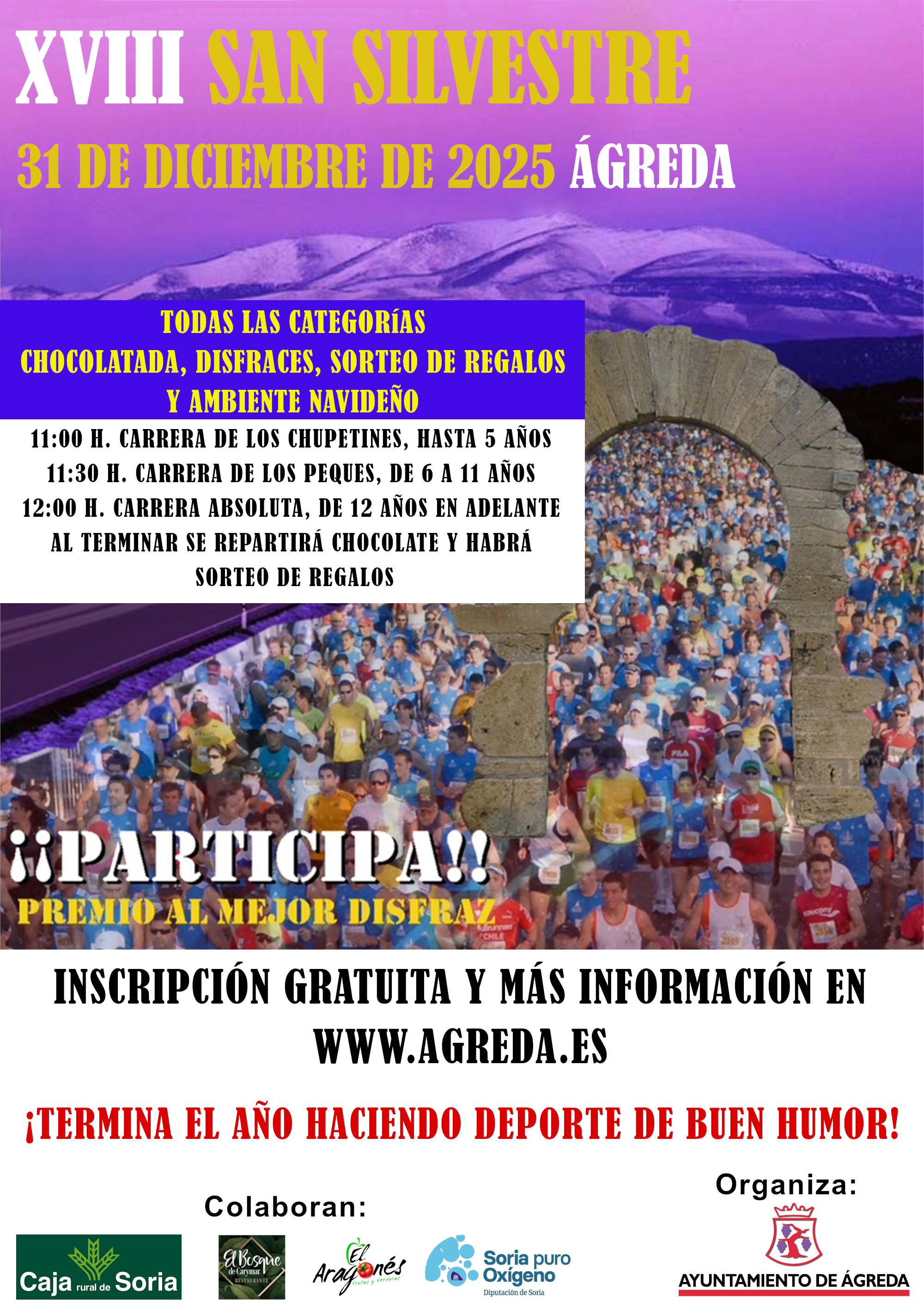 INSCRIPCIÓN PINCHA AQUÍ Descargas san_silvestre_agredena.pdf (1.29 MB) Enlaces de Interés Inscripción San Silvestre Galería de Imágenes Comparte esta Página